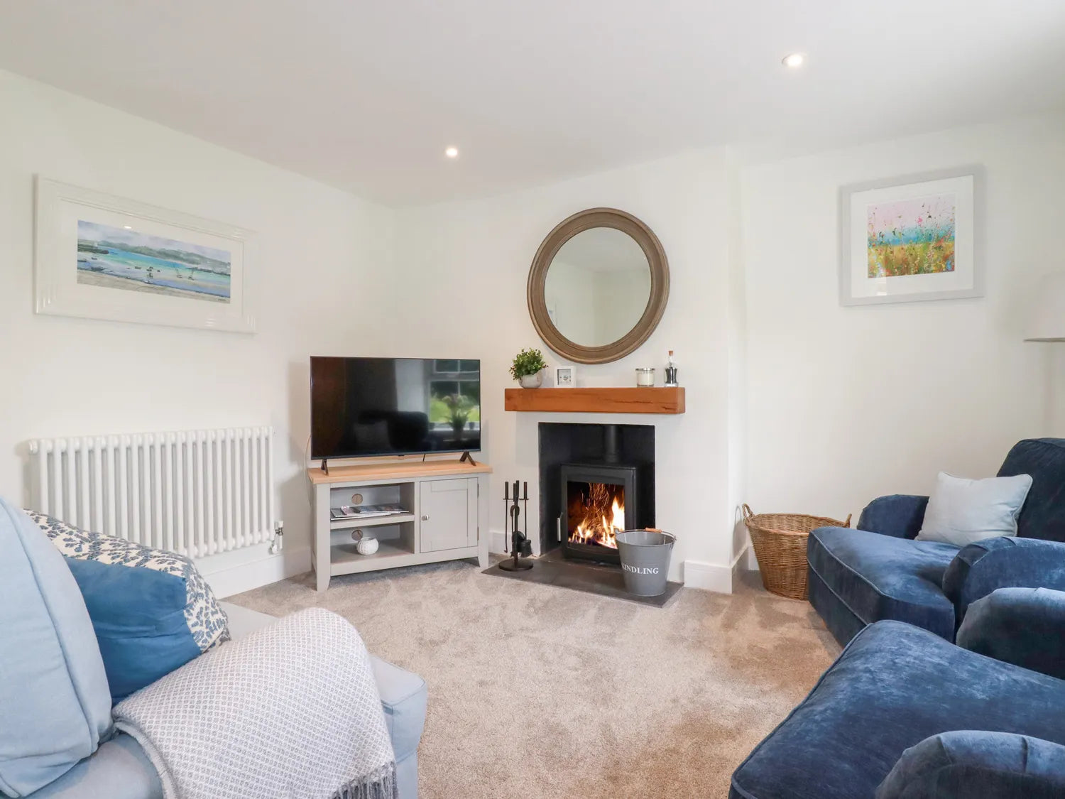 Cosy sitting room with wood burning stove